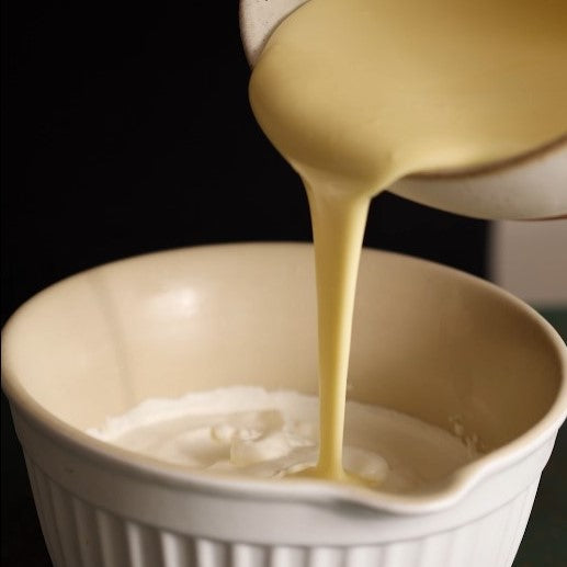 Incorporate the whipped eggs into the cream and continue whisking until the mixture is creamy and well combined.