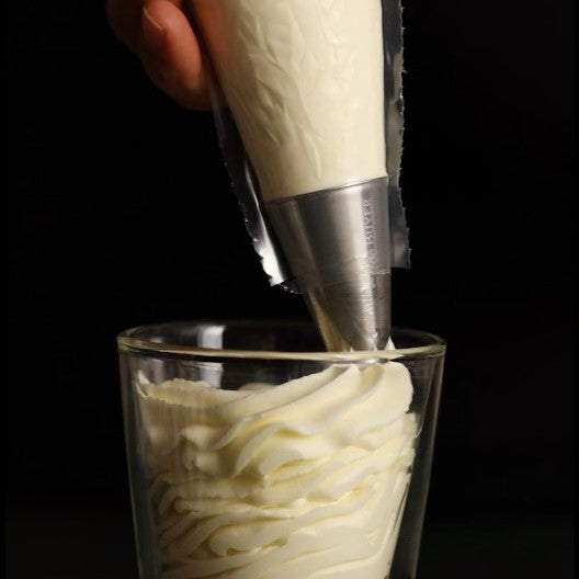 Whip the cream with a whisk, ensuring it is very cold. Start at a low speed, then gradually increase the speed. Set it aside in the fridge.