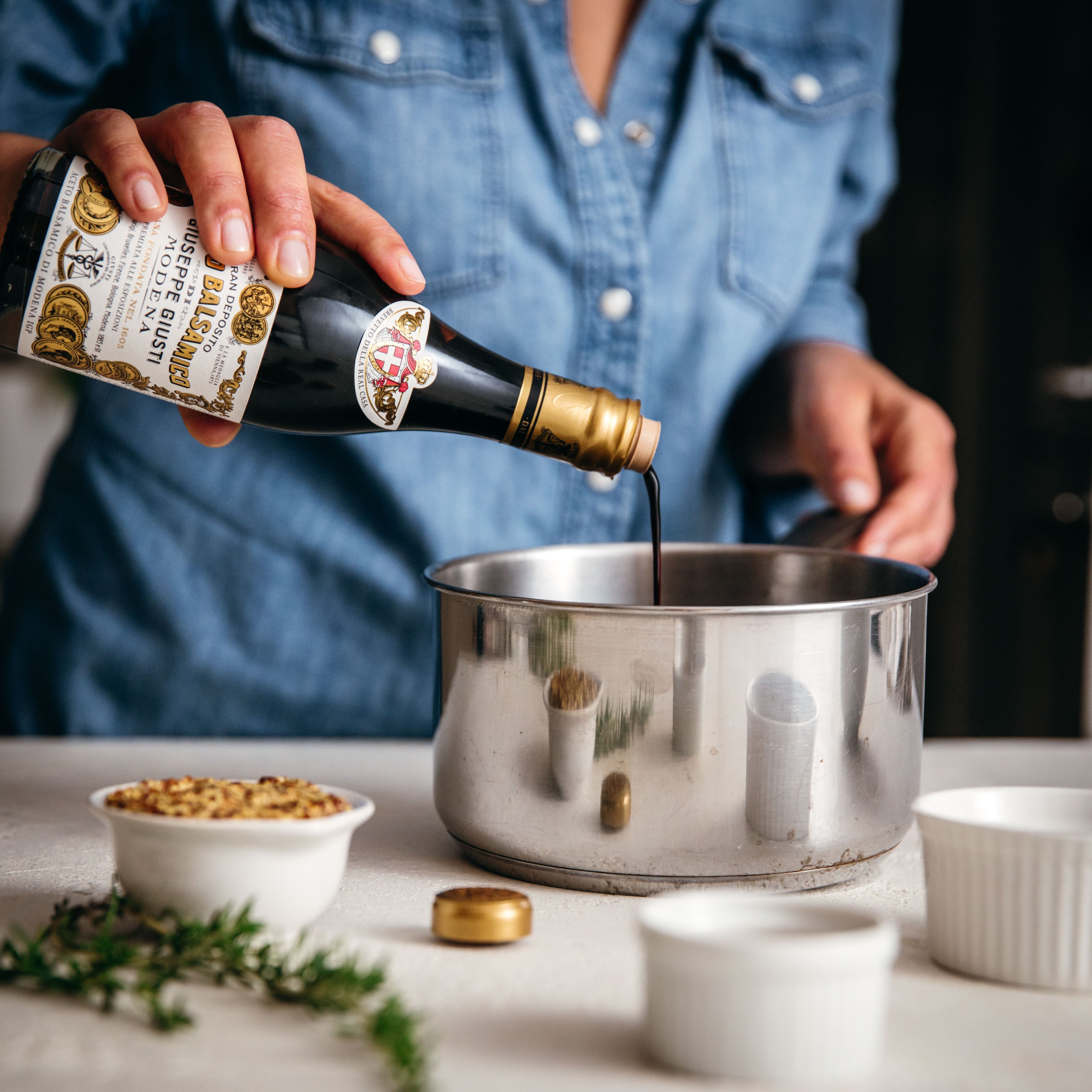Meanwhile, prepare barbecue sauce. In a saucepan, bring Giusti 2 Gold Medals Balsamic Vinegar of Modena to a boil. Add remaining sauce ingredients, bring to a boil again, then simmer until thickened.