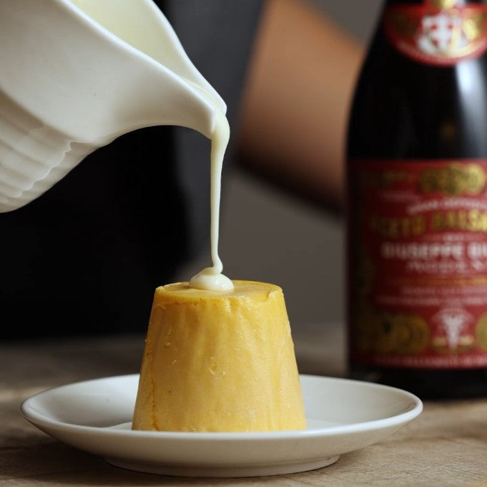 Flip the flans onto serving plates, pour the fondue on top, insert a Parmigiano wafer, and only at the table, drizzle with Giusti 3 Gold Medals Balsamic Vinegar.
